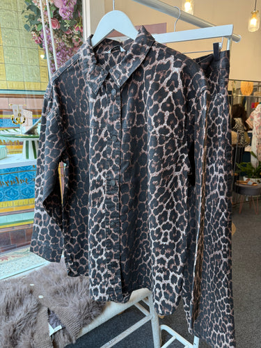 White / Leopard Collar Blouse