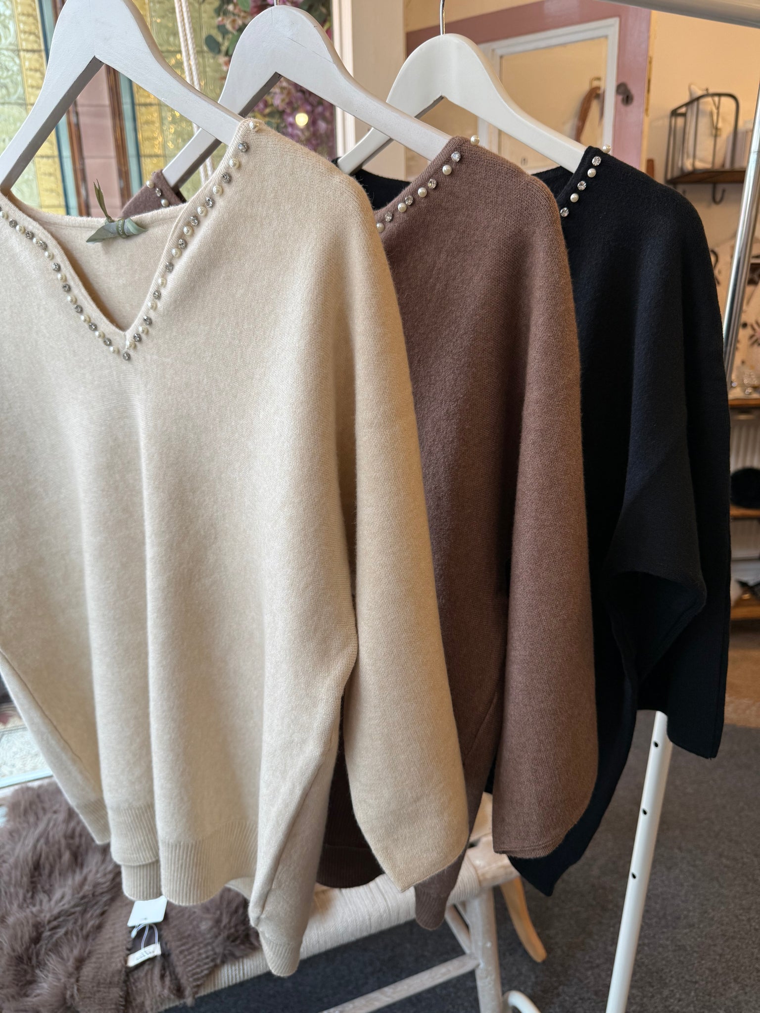 • Load image into Gallery viewer, Cream Diamanté Jumper
